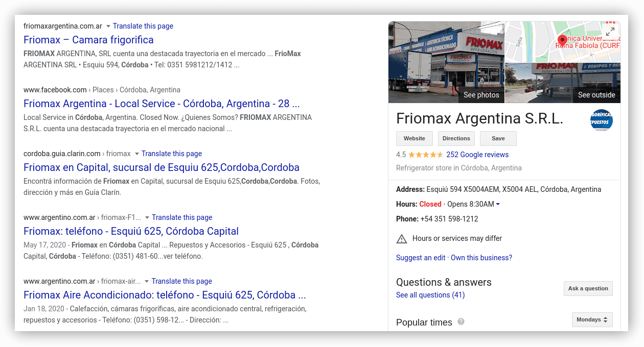 Now, google search FRIOMAX, Córdoba: