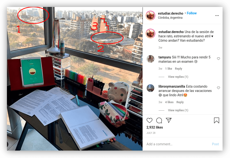 Based on intro from this Youtuber’s Instagram page, the rough geolocation is [📍 Córdoba, Argentina 🇦🇷]. Well, this isn’t’ enough apparently. We need to know the exact location right? So let’s go through those image feeds, specifically targeting the one with iconic buildings or like sunrise/sunset.